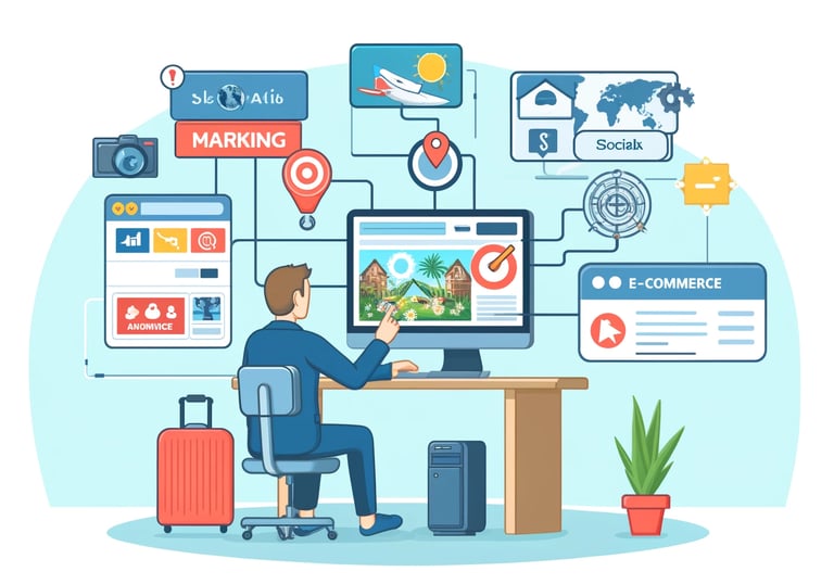 Meneliti strategi pemasaran digital dan platform e-commerce untuk promosi dan penjualan produk serta layanan pariwisata.